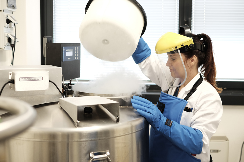 Biobanking platform solution and liquid nitrogen containers: an electronic banking system and cryopreservation system in vapour phase liquid nitrogen with automated refill for cell and tissue samples; this ensures the confidentiality of the clinical data and the anonymity of samples which are traceable only by the operator using a barcode reader. In a single container it is possible to store more than 10,000 vials of viable samples.