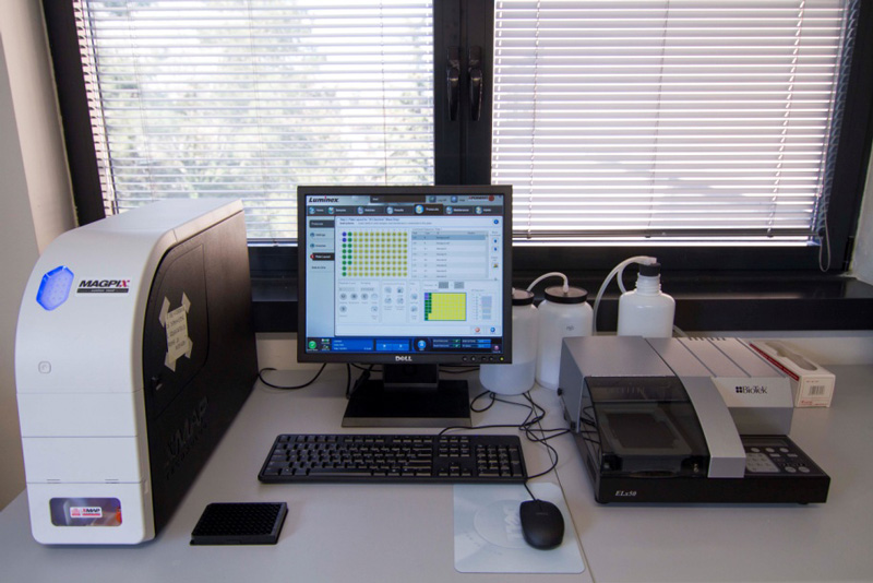 With the Luminex technology available in our laboratories, the Biobank is also able to analyze the release of cytokines/chemokines (and other protein biomarkers) in precious small volumes samples, such as serum/plasma of patients, cell supernatants, cell lysates, etc.